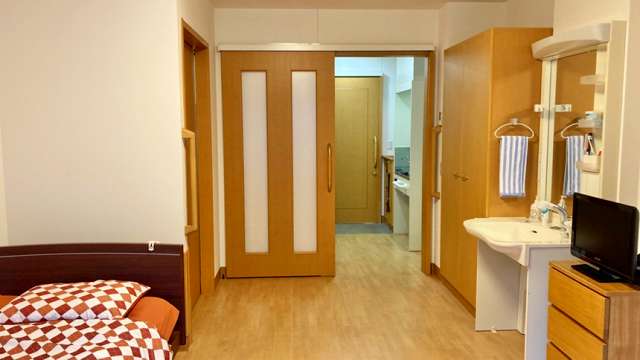 居室設備:洗面、水洗トイレ、ナースコール、収納、下駄箱、浴室、ミニキッチン、洗濯機スペース、固定電話設置可能