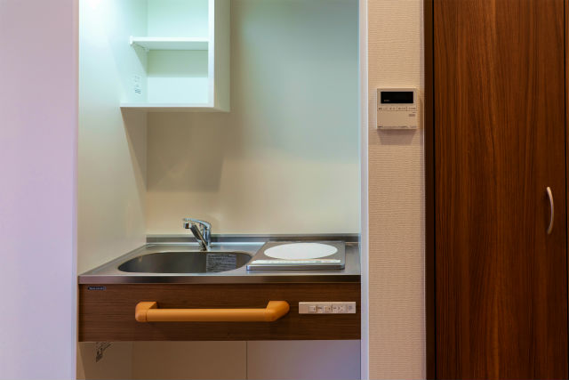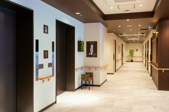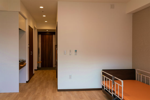 居室設備:電動介護ベッド、収納、照明、エアコン、緊急通報装置、スプリンクラー、洗面台、トイレ(ウォシュレット付)、靴履替用折り畳みイス、ユニットバス、洗濯機置場、ミニキッチン、冷蔵庫置場、来客用駐車場完備、小規模多機能併設