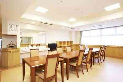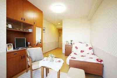 居室設備:電動リクライニング式ベッド・冷暖房完備・収納家具・木製キャビネット・テレビ・応接セット・カーテン・コールボタン・ウォシュレット付トイレ・洗面台・オゾン消臭装置・天井照明・フットライト