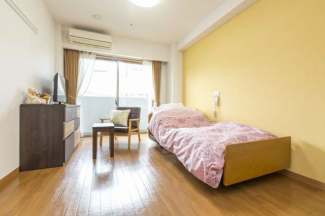 居室設備:介護用電動ベッド、寝具、照明、冷暖房、クローゼット、洗浄機能付トイレ、温水器付洗面台、防火カーテン、ケアコール、防火設備、電話回線、TV回線