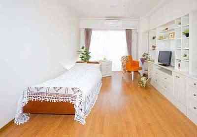 居室設備:介護ベッド、洗面台、収納、トイレ、エアコン、照明、カーテン、TV端子、電話ジャック