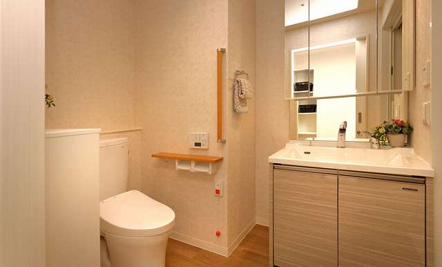 居室設備:洗面、暖房便座付水洗トイレ、ナースコール、収納、下駄箱、浴室、ミニキッチン、洗濯機スペース、固定電話設置可能