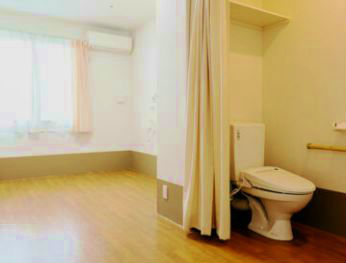 居室設備:トイレ、洗面台、エアコン、カーテン、緊急通知システムなど