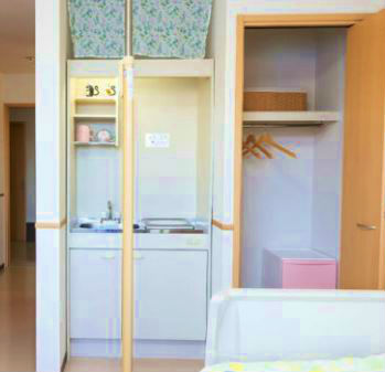 居室設備:トイレ、洗面台、エアコン、カーテン、収納、緊急通知システム