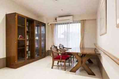 居室設備:ベッド、寝具一式、ワードローブ、ナイトテーブル、リクライニングチェアー、緊急通報付電話機、緊急コール、ペンダントコール、床暖房、カーテン、エアコン、テレビ、照明器具、テーブル、椅子、3点式ユニットバス