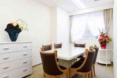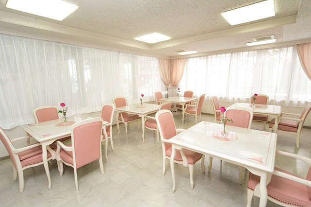 居室設備:ベッド、キャスター付ナイトテーブル、寝具一式、ワードローブ、電話機、緊急コール、ペンダントコール、カーテン、エアコン、ライティングデスク、椅子、冷蔵庫