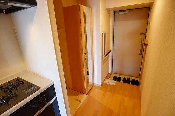 居室設備:トイレ、エアコン、キッチン、クローゼット、フローリング、BSアンテナ、CSアンテナ、フラットフロア、人感センサー、浴室、温水洗浄機能付きトイレ、相談インターホン、鏡、靴箱