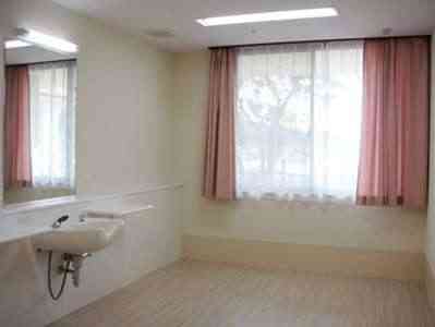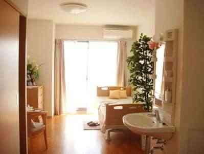 居室設備:スプリンクラー、防炎カーテン、緊急コール、見守りカメラ、介護専用電動ベッド、温水洗浄トイレ、車椅子対応洗面台、エアコン、収納