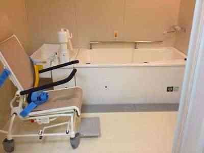 居室設備:介護用電動ベッド(寝具付)、ナースコール、車いす対応洗面台、温水洗浄機能付トイレ、チェスト、クローゼット、デスク、カーテン(レース・ドレープ)、エアコン
