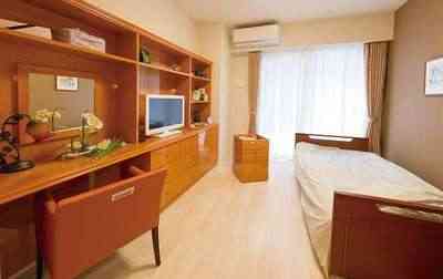 居室設備:介護ベッド、洗面台、収納、トイレ、エアコン、照明、TV端子、電話ジャック