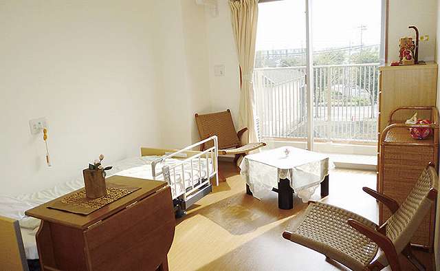 居室設備:エアコン・介護ベッド・寝具・ナースコール・トイレ(ウォシュレット)・照明・洗面台・スプリンクラー