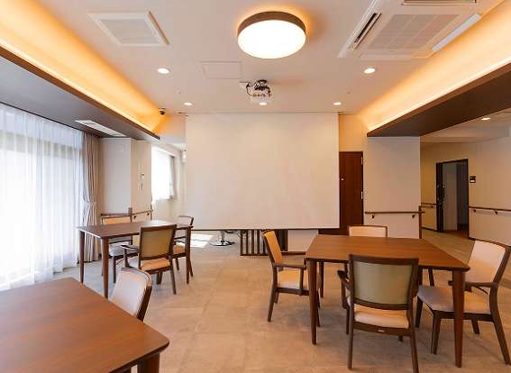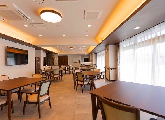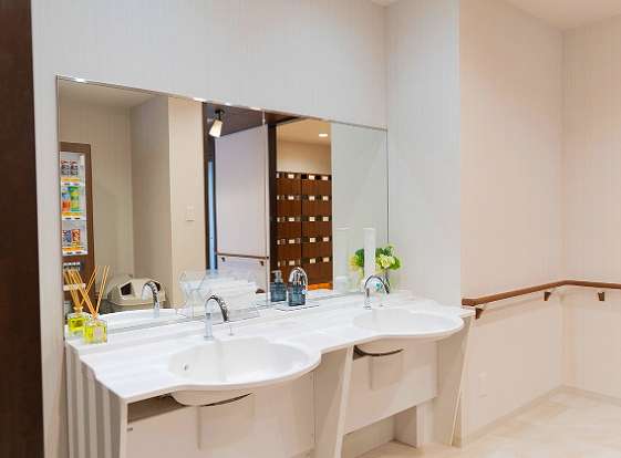 居室設備:エアコン、温水洗浄機能付トイレ、洗面台、ケアコール、スプリンクラー、介護ベッド、収納
