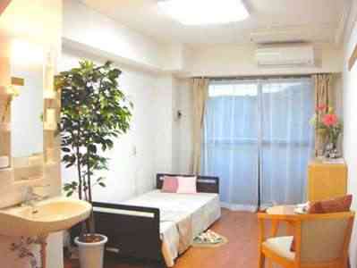 居室設備:スプリンクラー、防炎カーテン、緊急コール、見守りカメラ、介護専用電動ベット、車いす対応洗面台、エアコン
