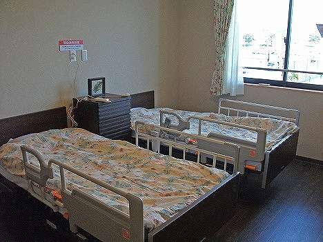 居室設備:トイレ、洗面、介護用ベッド、クローゼット・エアコン、緊急呼び出しボタン ※IHミニキッチンあり(B・C・Dタイプ)・浴室あり(B・Cタイプ)・畳あり(Dタイプ)