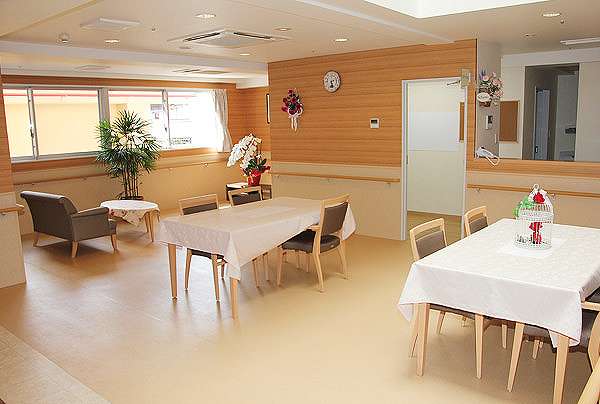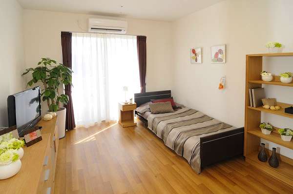居室設備:介護ベッド、車椅子対応洗面台、電気給湯器、照明器具、カーテン、クローゼット、エアコン、トイレ、ナースコール、非常用報送設備 他