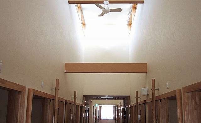 居室設備:介護用電動ベッド、寝具、冷暖房、トイレ(全居室完備、洗浄機付)、温水器付洗面所、照明、消防設備(自動火災報知設備、スプリンクラー)、テレビ回線、ナースコール(2か所/トイレ・ベッド)
