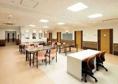 居室設備:介護ベット、車椅子対応洗面台、トイレ、エアコン、ナースコール(2ヶ所)、寝具、カーテン、照明器具、テレビ端子、電話端子、スプリンクラー