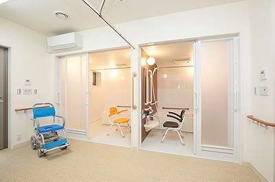 居室設備:地上波アンテナ、電気給湯器、玄関引き戸扉、収納棚、クローゼット、収納スペース、手すり、フローリング、ナースコール、防災設備、空調換気設備、照明器具、エアコン、トイレ、温水洗浄機能付きトイレ、浴室暖房乾燥機、物干しベランダ、避難設備