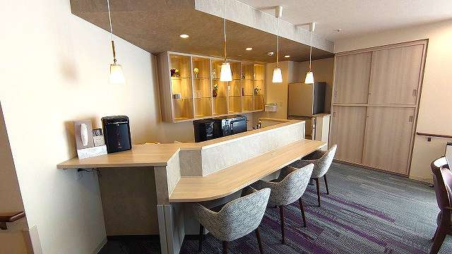 居室設備:介護ベッド、温水洗浄機能付きトイレ、スタッフコール、防災カーテン、エアコン、チェスト、収納、照明、洗面