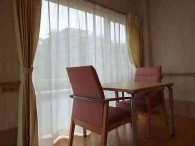 居室設備:介護ベット、タンス、ウォシュレット機能付トイレ、洗面、カーテン、エアコン、空気清浄機、ナースコール、調光機付の照明