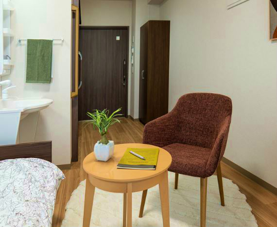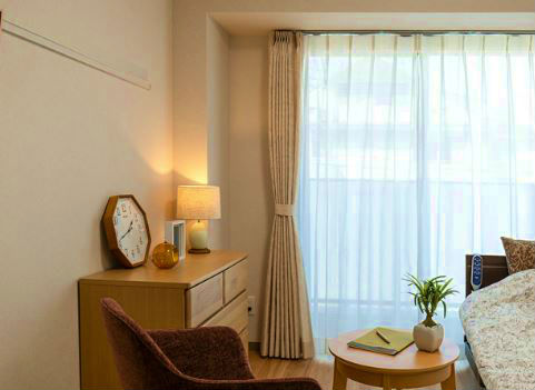 居室設備:介護ベッド・エアコン・クローゼット・カーテン・照明器具・トイレ・洗面台・緊急コール等