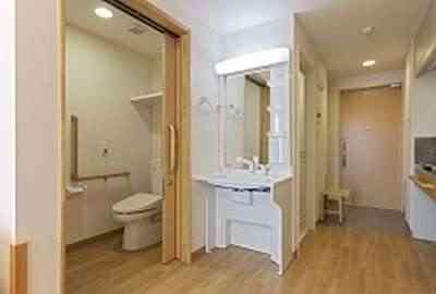 居室設備:洗面、暖房便座付トイレ、緊急呼出装置、収納、下駄箱、浴室、ミニキッチン、洗濯機スペース、固定電話設置可能、玄関収納椅子、エアコン