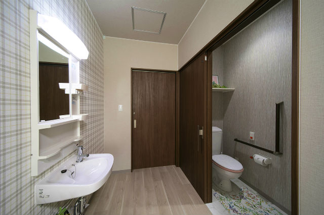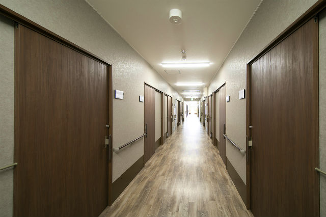 居室設備:エアコン、ナースコール(居室・トイレに各1ヶ所)、防火カーテン、照明器具