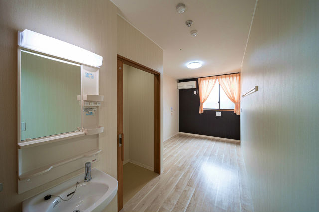 居室設備:エアコン、ナースコール(居室・トイレに各1ヶ所)、防火カーテン、照明器具