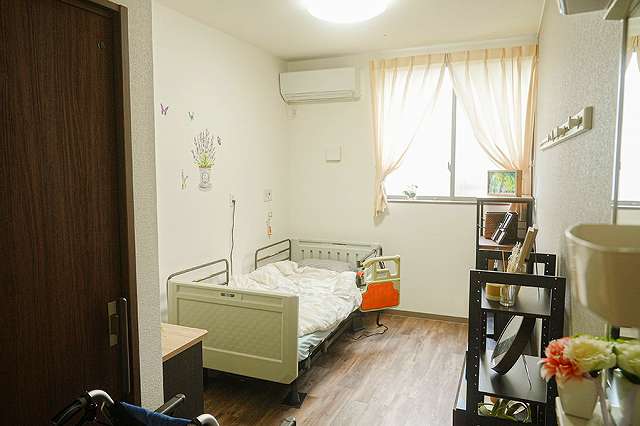 居室設備:エアコン、ナースコール(居室・トイレに各1ヶ所)、防火カーテン、照明器具