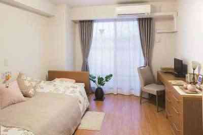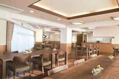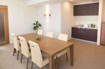 居室設備:介護用電動ベッド(寝具付)、ナースコール、車いす対応洗面台、温水洗浄機能付トイレ、チェスト、クローゼット、デスク、メモリーボックス、カーテン(レース・ドレープ)、エアコン