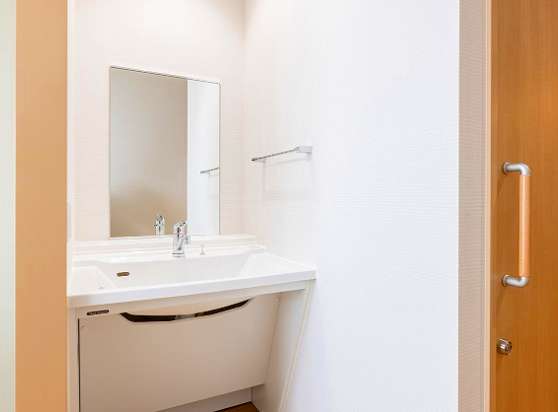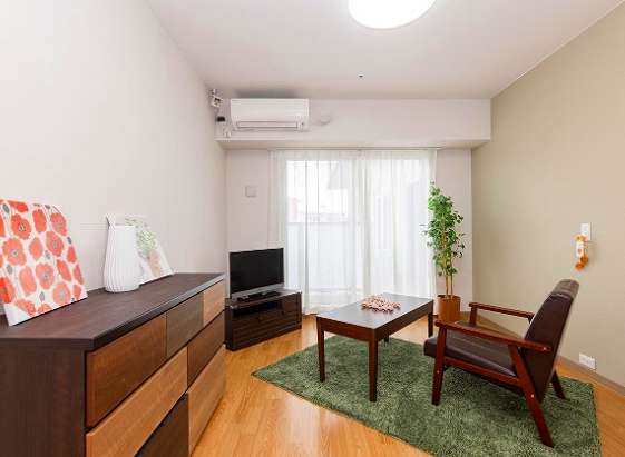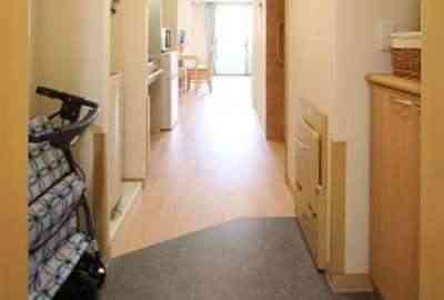 居室設備:洗面、暖房便座付トイレ、緊急呼出装置、収納、下駄箱、浴室、ミニキッチン、洗濯機スペース、固定電話設置可能、玄関収納椅子、エアコン