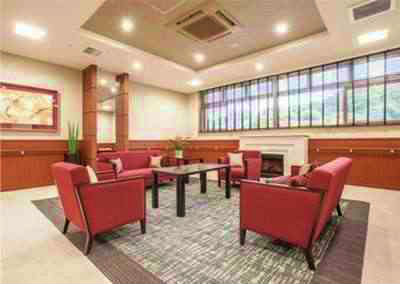 居室設備:想い出ボックス、フローリング(一部クッションフロア)、車いす対応洗面化粧台(シャンプー水栓付)、電気式温水器、洗濯防水パン(D・Eタイプ)、トイレ(温水洗浄付、暖房便座機能付)、洗面・トイレ照明(人感センサー付)、手すり(トイレ)、ミニキッチン(D・Eタイプ)、クローゼット、床暖房(電気式)、電動式介護ベッド、寝具、居室照明(リモコン付)、ケア・ナースコール、冷暖房エアコン、スプリンクラー、非常放送設備、防炎カーテン、カーテンレール、カーテンボックス
