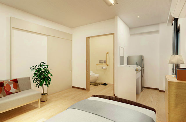 居室設備:介護ベッド、洗面台、トイレ、カーテン、エアコン、TV端子、電話ジャック※1階3室(19.39平米)はトイレなし