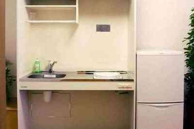 居室設備:フローリング、フラットフロア、引き戸式ドア(玄関)、玄関インターホン、車椅子対応トイレ、鏡、車椅子対応洗面化粧台、シャワー、電動介護ベッド、クローゼット、照明器具、相談インターホン、防災設備、ミニキッチン、電磁調理器、エアコン、地上波アンテナ、物干しベランダ