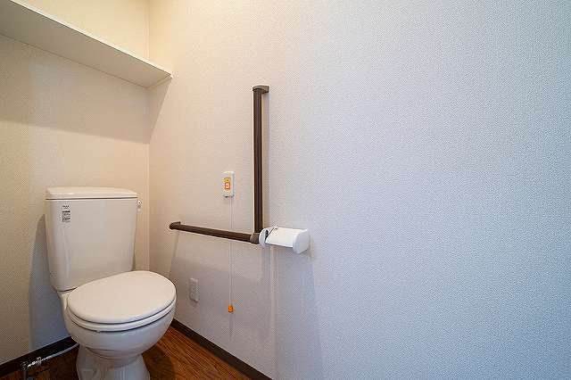 居室設備:エアコン、洗面台、暖房便座付トイレ、緊急呼出装置、収納、下駄箱、浴室、ミニキッチン、洗濯機スペース、固定電話設置可能、玄関収納椅子