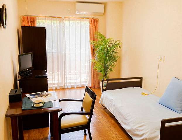 居室設備:全室冷暖房完備・介護ベッド・チェスト・テーブル・イス・テレビ・カーテン・ナースコール等