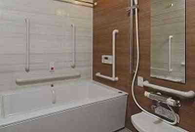 居室設備:エアコン、洗面台、暖房便座付トイレ、緊急呼出装置、収納、下駄箱、浴室、ミニキッチン、洗濯機スペース、固定電話設置可能、玄関収納椅子