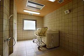 居室設備:加湿機能付エアコン、トイレ(温水洗浄暖房便座付)、洗面台、介護用電動ベッド、クローゼット、カーテン、ナースコール、テレビ配線、電話配線、スプリンクラー