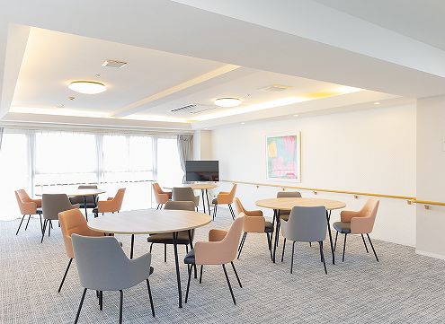 居室設備:寝具一式、カーテン、緊急通報装置、テレビ回線、電話端子、照明器具、車椅子対応洗面化粧台、エアコン