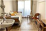 居室設備:スプリンクラー、防炎カーテン、緊急コール、介護専用電動ベッド、車いす専用洗面台、温水洗浄トイレ、エアコン、収納