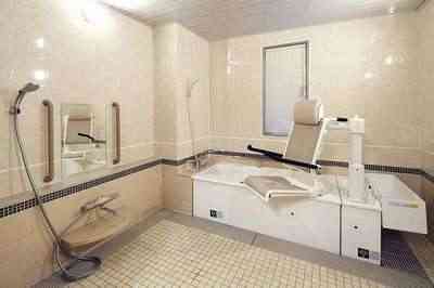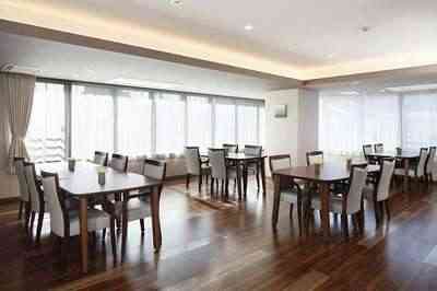 居室設備:介護用電動ベッド(寝具付)、ナースコール、車いす対応洗面台、温水洗浄機能付トイレ、チェスト、クローゼット、デスク、メモリーボックス、カーテン(レース・ドレープ)、エアコン