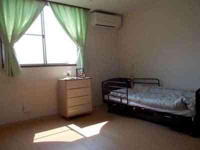 居室設備:介護ベット、洗面台、電気温水器、エアコン、トイレ、収納、カーテン、照明、ナースコール他