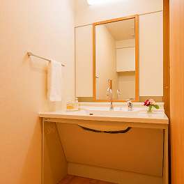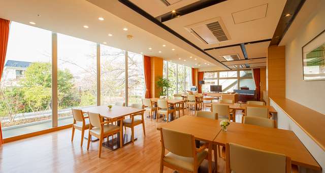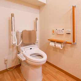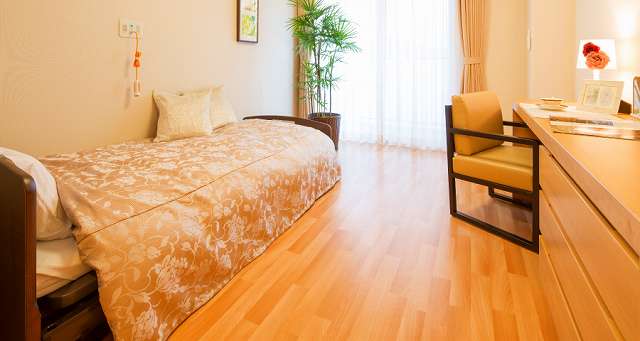 居室設備:家具、カーテン、エアコン、床暖房、介護対応型電動ベッド、クローゼット、ナースコール、温水洗浄機能付きトイレ、車いす対応洗面台、玄関ディスプレイ
