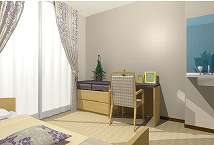 居室設備:介護ベット、洗面台、収納、トイレ、エアコン、照明、TV端子、電話ジャック