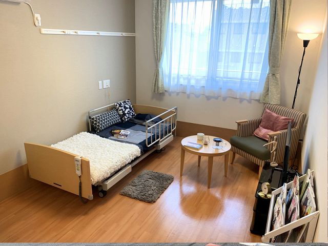 居室設備:トイレ、洗面台、介護ベット、エアコン、収納、カーテン、照明
