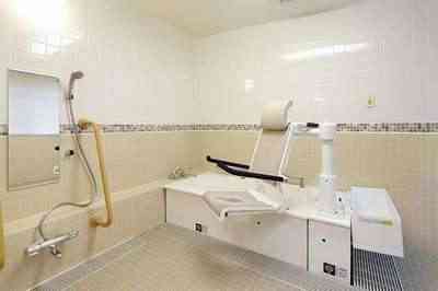 居室設備:介護用電動ベッド(寝具付)、ナースコール、車いす対応洗面台、温水洗浄機能付トイレ、チェスト、クローゼット、デスク、メモリーボックス、カーテン(レース・ドレープ)、エアコン