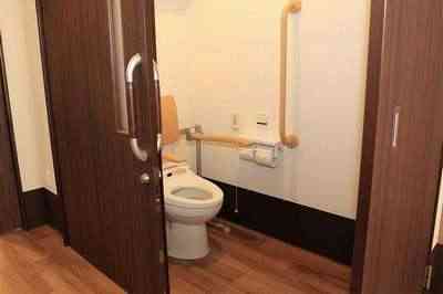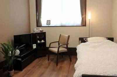 居室設備:フラットフロア、引き戸式ドア(玄関)、引き戸式ドア(居室内)、トイレ、温水洗浄機能付きトイレ、車椅子対応トイレ、鏡、化粧洗面台、車椅子対応洗面化粧台、電動介護ベッド、クローゼット、収納スペース、照明器具、間接照明、カーテン、防火カーテン、避難設備、ナースコール、エアコン、地上波アンテナ、電話回線