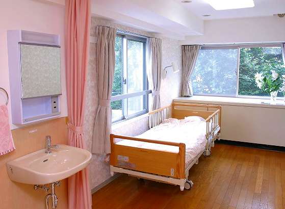 居室設備:トイレ、ベッド、クローゼット、エアコン、ナースコール、スプリンクラー。