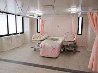 居室設備:クローゼット、手すり、フラットフロア、ナースコール、防災設備、空調換気設備、照明器具、ベッドライト、エアコン、鏡、寝具一式、トイレ、温水洗浄機能付きトイレ、車椅子対応トイレ、車椅子対応洗面化粧台、洗面化粧台、避難設備、介護用ベッド