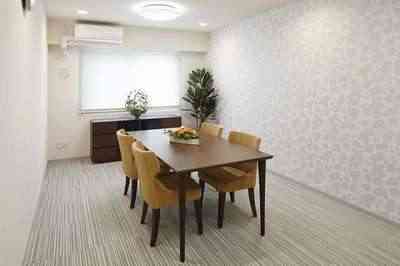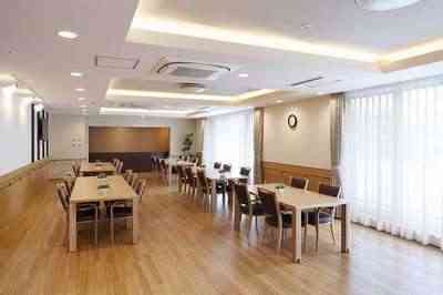 居室設備:介護用電動ベッド(寝具付)、ナースコール、車いす対応洗面台、温水洗浄機能付トイレ、チェスト、クローゼット、デスク、メモリーボックス、カーテン(レース・ドレープ)、エアコン